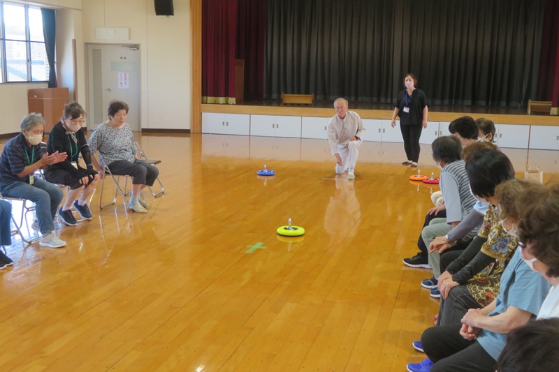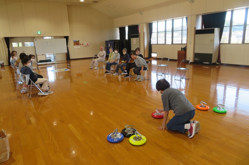 10月10日(金)、原田公民館で行われている原田いきいきサロンにお邪魔しました今回は18名の方が参加されていました。最初に柔軟体操と脳トレを行い、2チームに分かれてカローリングを行いましたゲーム中は大変盛り上がり、みんなで楽しい時間を過ごしました