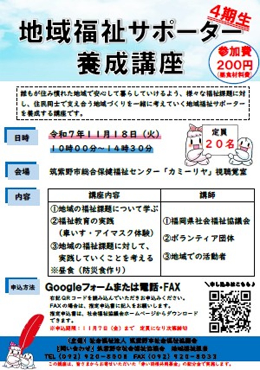 申込・問合せ:筑紫野市社会福祉協議会 地域福祉担当